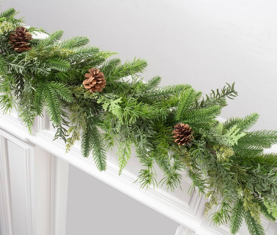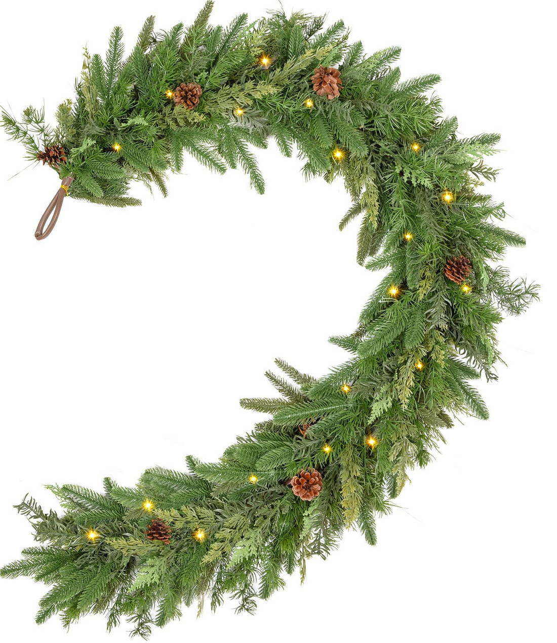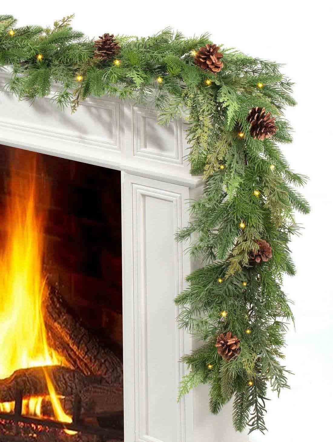 6FT Garland with 50 Lights: Kit includes a 6FT Christmas pine garland made of high quality PE material and a 50 LED string light; When you take out the product from the package, please handle the branches and leaves with your hands, which have been compressed by the package before