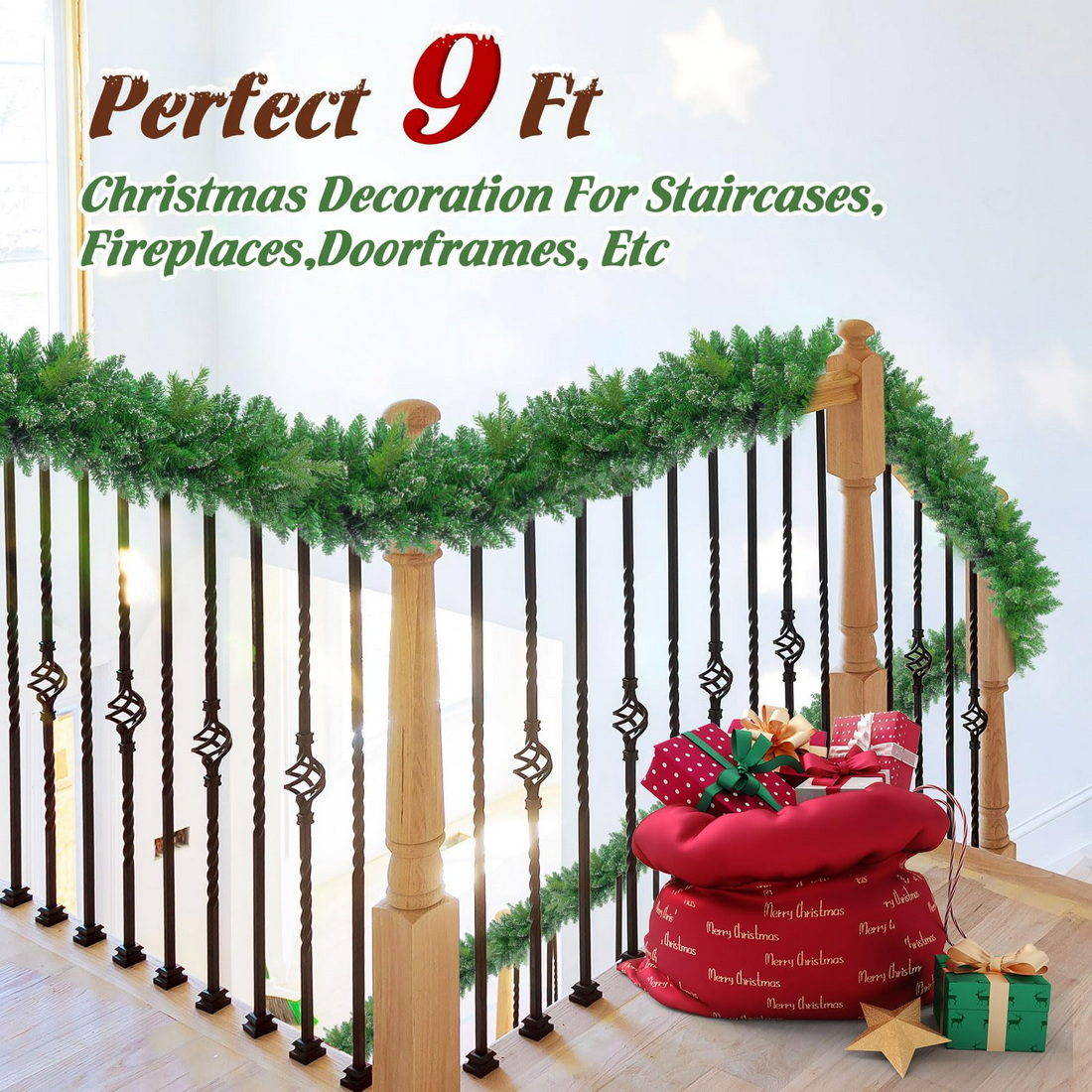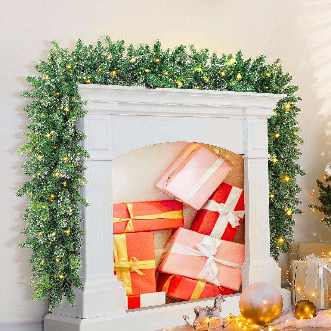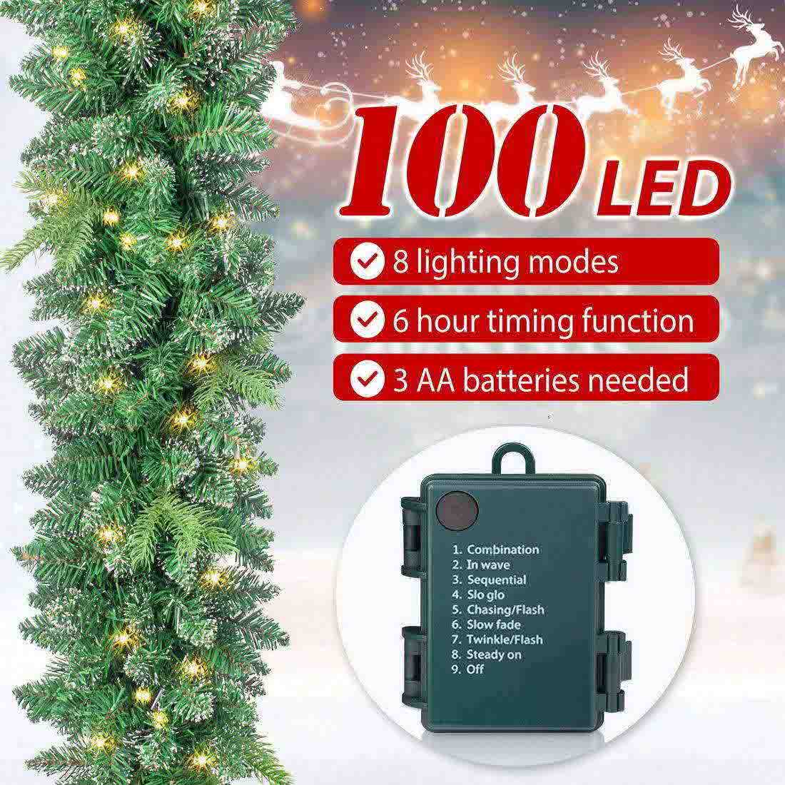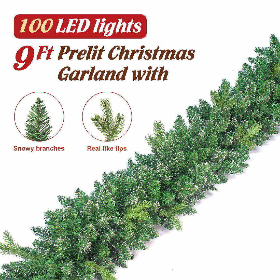 ¡¾9FT/100 Light Christmas Garlands¡¿- We used real-like tips, snow branches to decorate this 9FT/100 light Christmas Garland to ensure that it looks rich and beautiful.When you take out the product from the package, please handle the branches and leaves with your hands, which have been compressed by the package before.