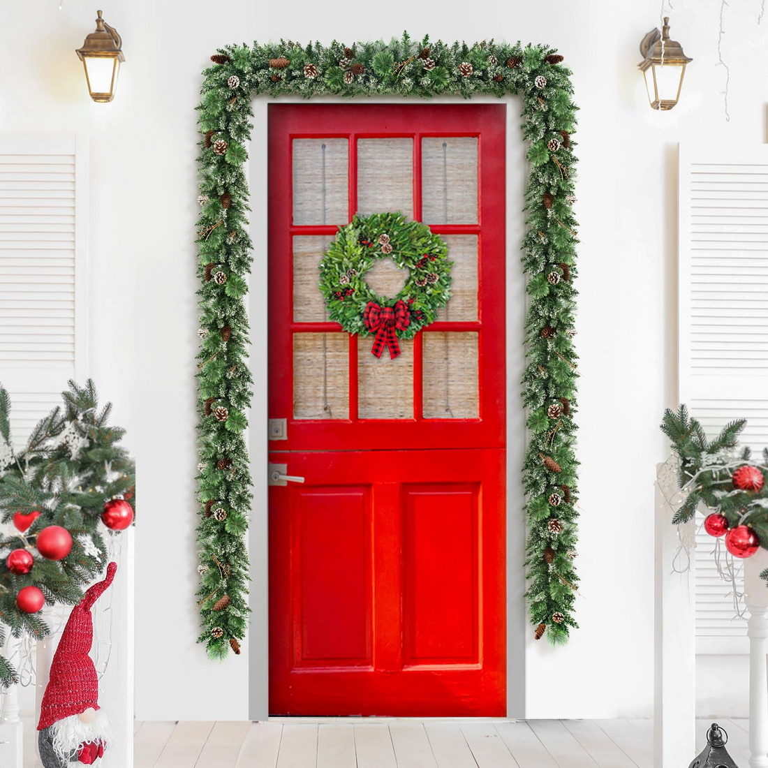 Natural Christmas Decor Indoor /Outdoor: Waterproof battery box allows this product to decorate indoor and outdoor, fireplace, stairs, door frame and wall, and decorate a classic Christmas scene for you.