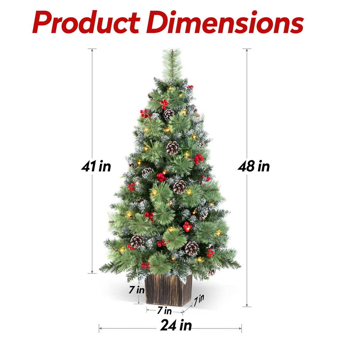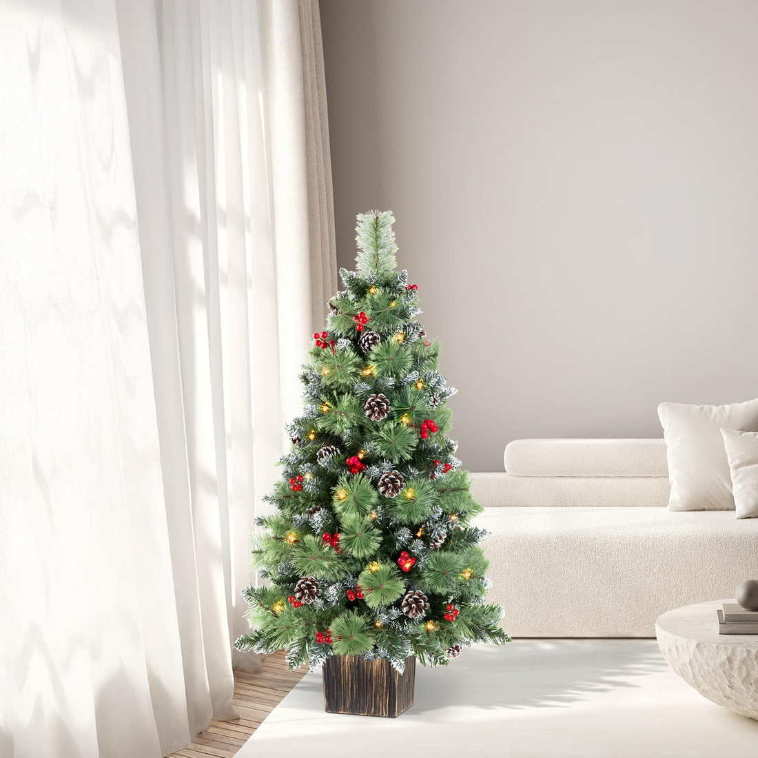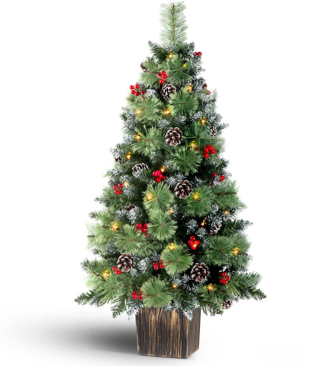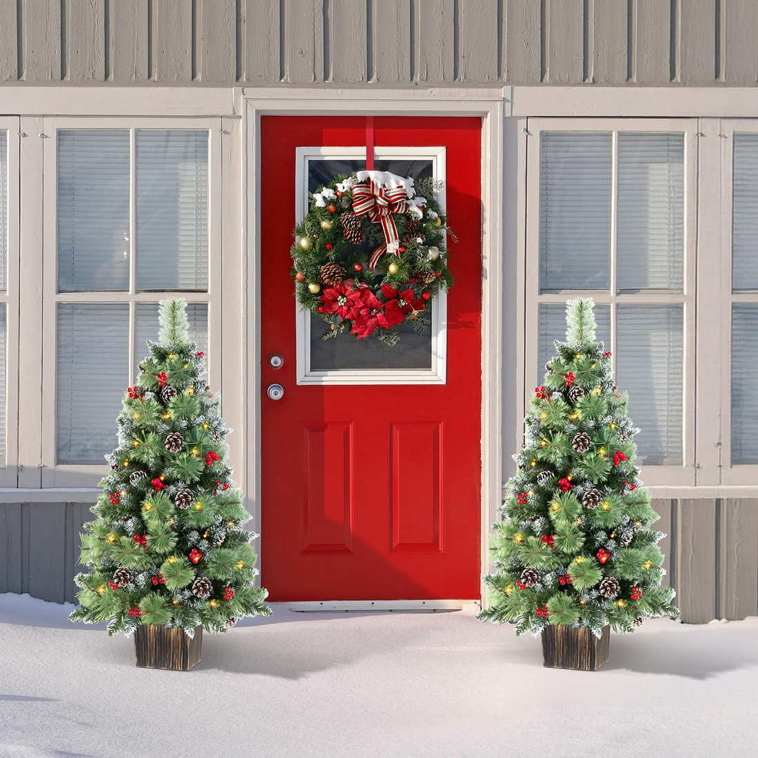 Fluffy Appearance: The Jin&Bao 4FT Christmas tree used snowy branches, pine needles, round pine cones and red berries, combined to form a fluffy and vivid Christmas tree.This tree is perfect for placing at your front door, porch, or entryway, adding a festive touch to your home.