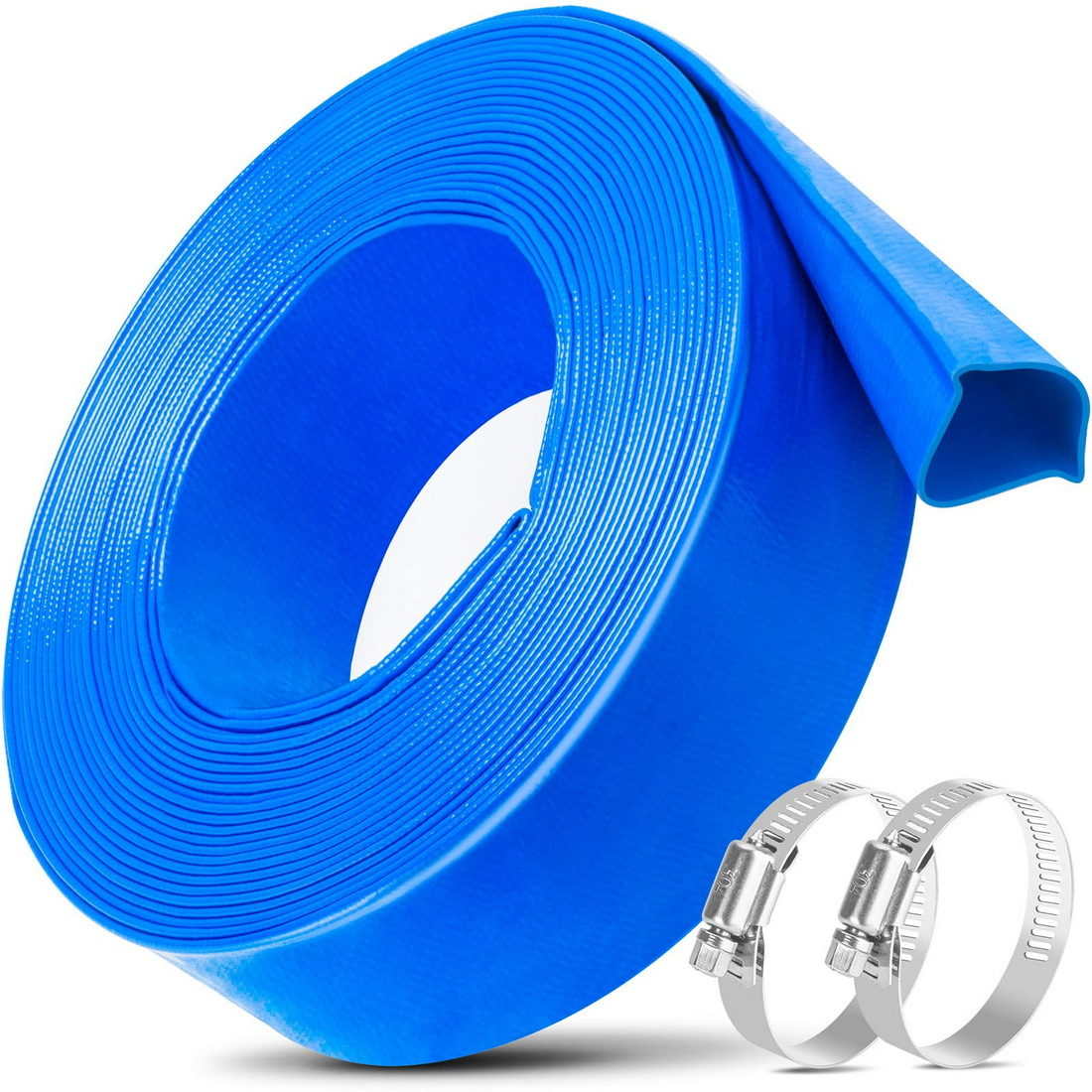 ¡¾Easy to Work¡¿- Comes with 2 stainless steel hose clamps, that help you quickly fix or remove. This lay flat hose is elastic and can be stretched and rolled flexibly for easy movement.